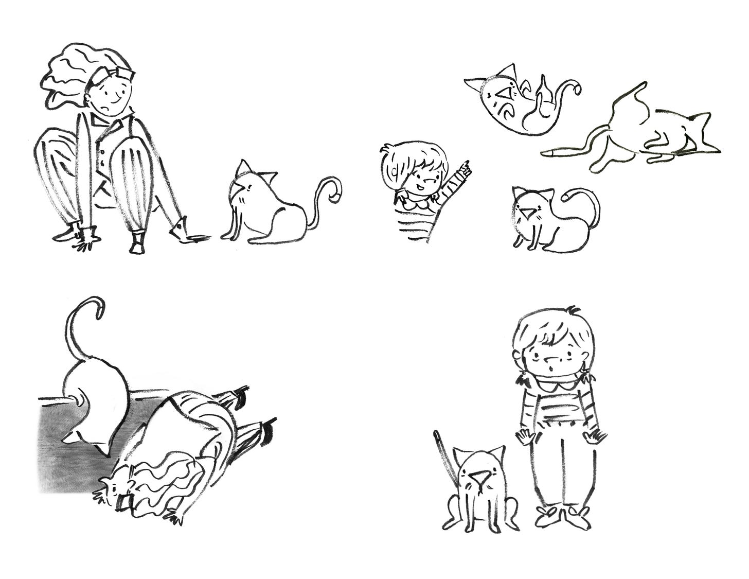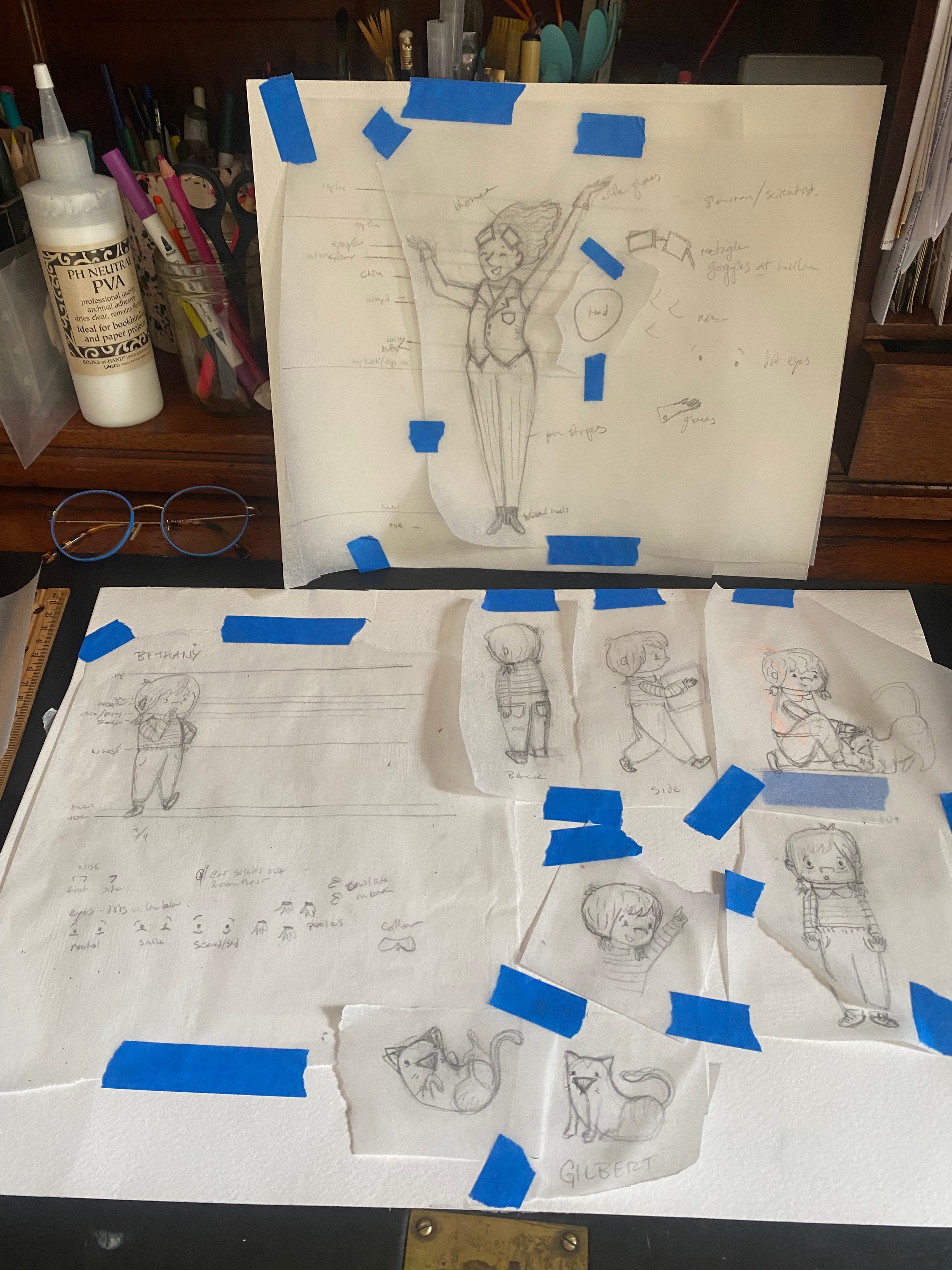 This week we are focussing on character turn arounds (what does your character look like at every angle). I tried to use Quentin’s approach - first drawing roughs with pencil, making sure everything was consistent and accurate if this character was actually three dimensional and was turned around. I really labored over these, a lot of erasing and redrawing.