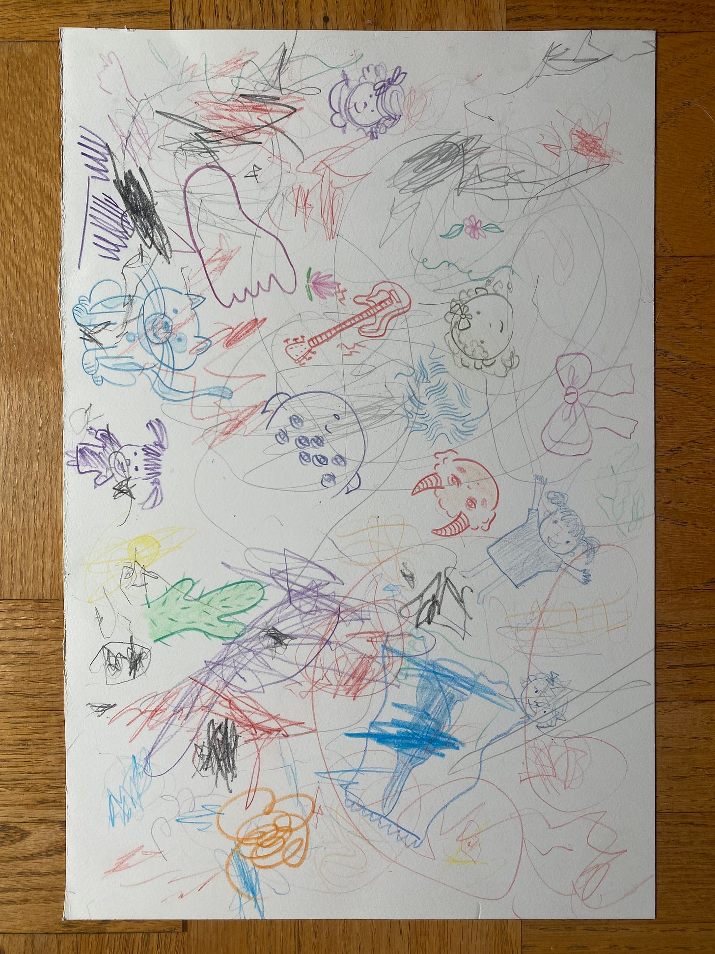 Margo is also getting more into drawing specific people and animals rather than just random scribbles. When I ask what we should draw her response is usually - “Kitty” or “Shark” or “Boo” (from Monsters Inc.) or Dahlia (her best friend).